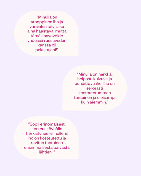 Syväkosteuttaa ja vähentää ihon hilseilyä ja kiristelyä