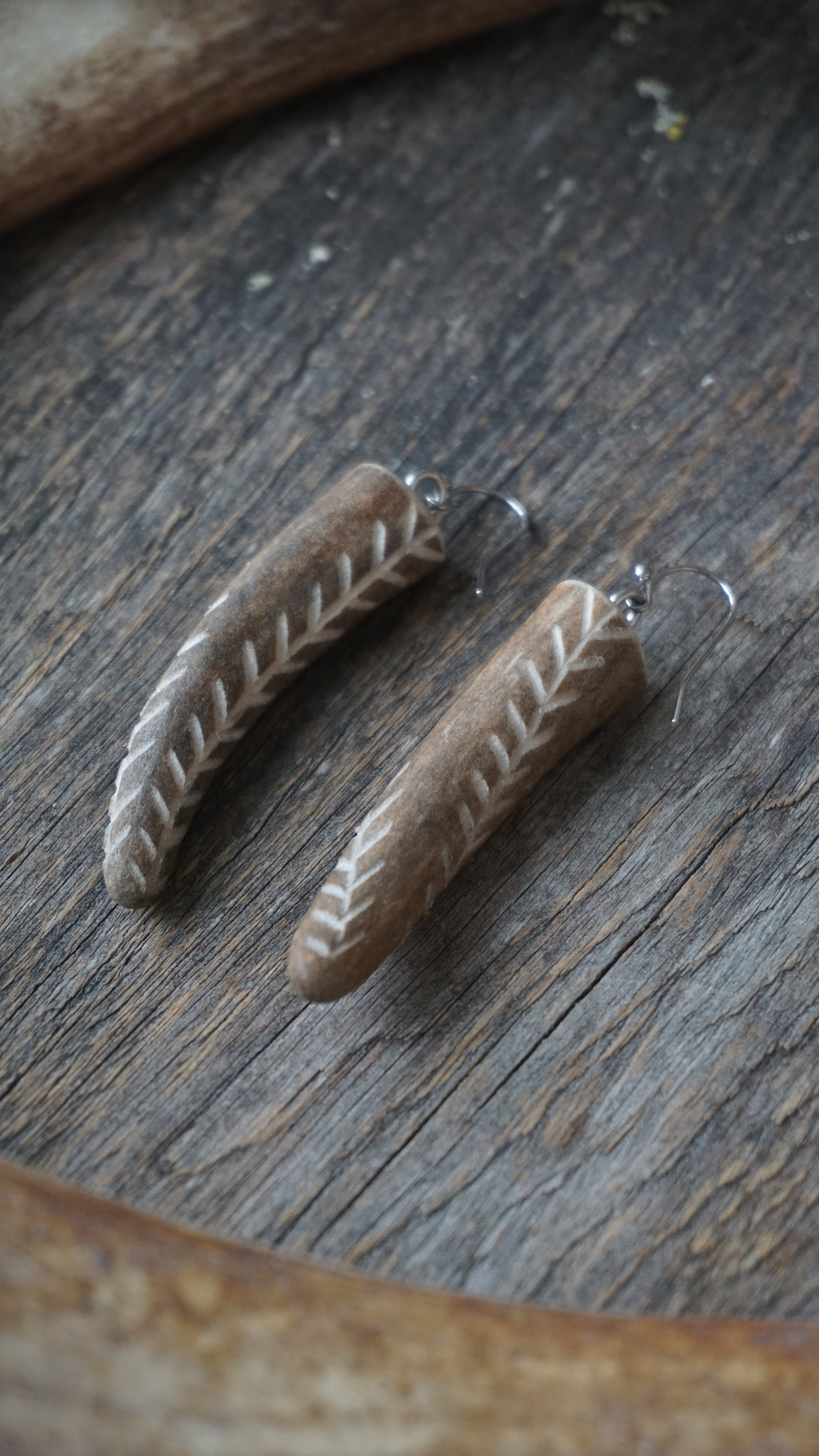 KÖYNNÖS-korvakorut on valmistettu poronsarven tunnistetuimmasta kohdasta eli sarven päätypaloista, niiden muoto on luonnostaan täydellinen korvakoruiksi. Sarven pintaan kaiverrettu kuvio muistuttaa köynnöskasveja ja kiemurtelee ympäri sarvea kasvin tavoin.