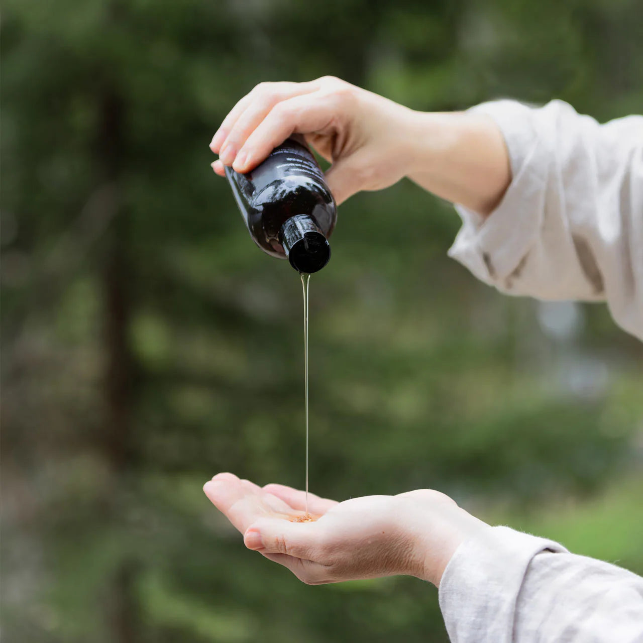 🌿 100 % luonnollinen ja suomalainen suoveteen valmistettu shampoo.