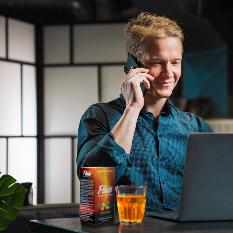 Tyrnimarjan makuinen Flow antaa potkua päivääsi ilman lisättyä sokeria tai turhia lisäaineita. Luontainen kofeiini guaranasta tukee vireystilaasi, ja tyrni tunnetaan ravintorikkaana supermarjana, joka sisältää runsaasti C- ja E-vitamiineja sekä elimistölle hyödyllisiä rasvahappoja.